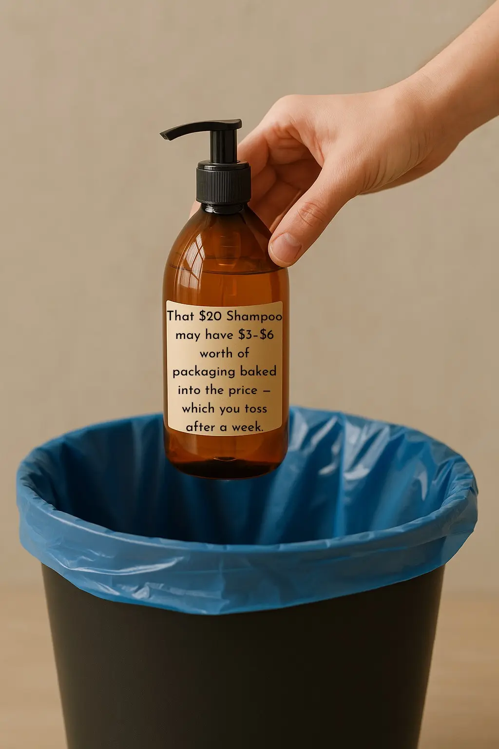 Half the time, your buying the bottle and the billboard! 20-60% of the price tag can be packaging + marketing-not the actual product inside. Ultimately throwing your hard earned money in the trash!